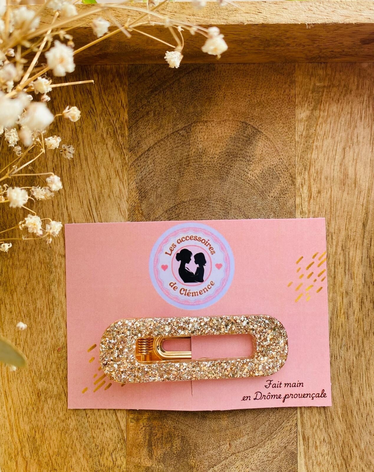 Le modèle Nathalie est une barrette bijou montée sur une pince rectangulaire de 6cm de longueur.